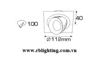 Kích thước: Ø 112 x H40 mm, Khoét lỗ: Ø 100 mm