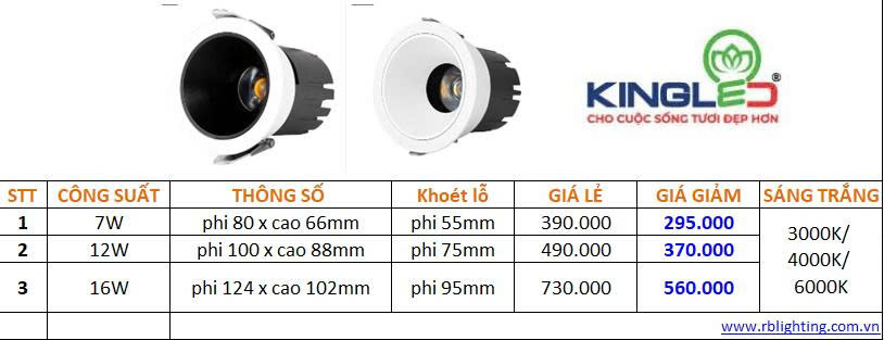 • Đèn LED âm trần rọi chóa sâu Zircon: