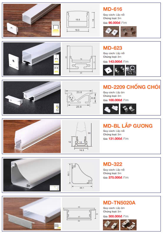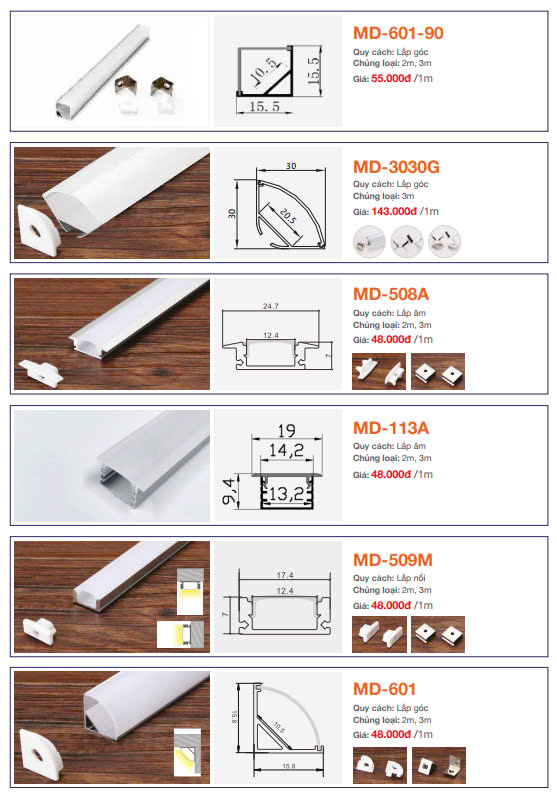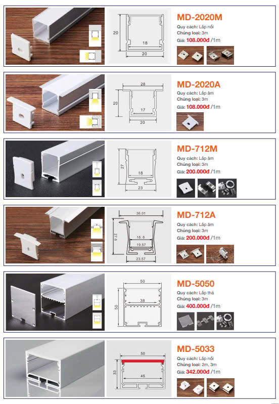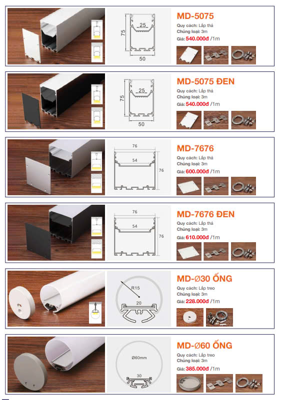 BẢNG GIÁ TẤT CẢ CÁC LOẠI THANH NHÔM ĐỊNH HÌNH