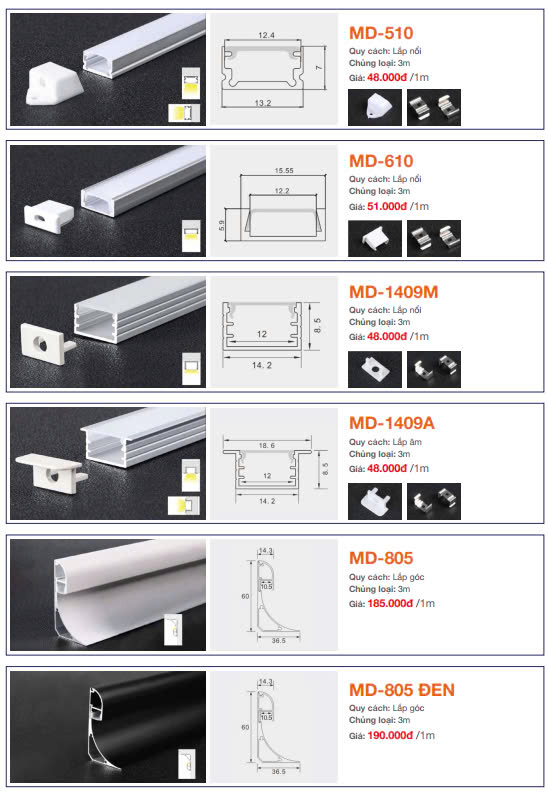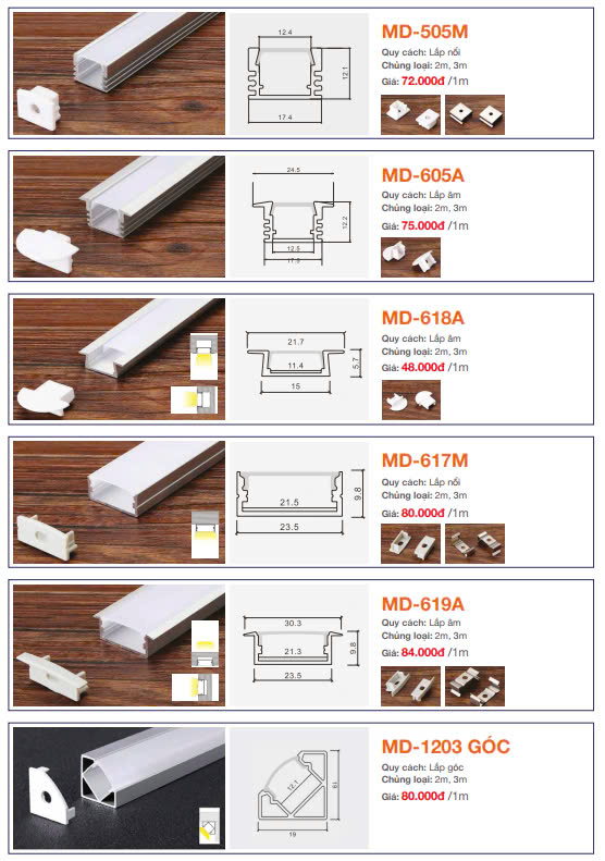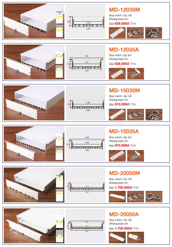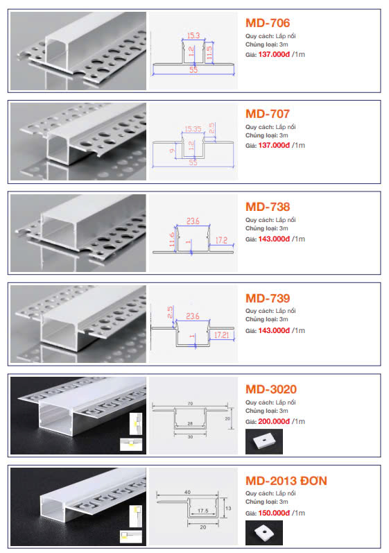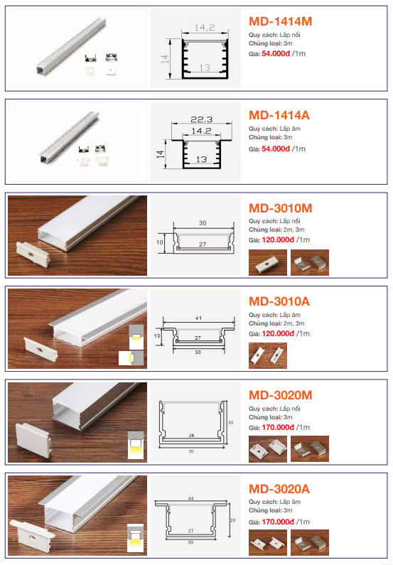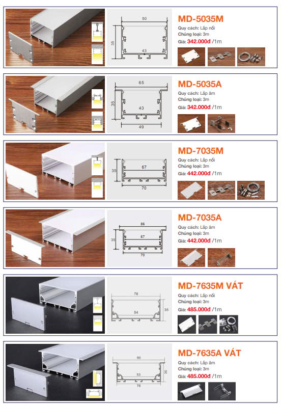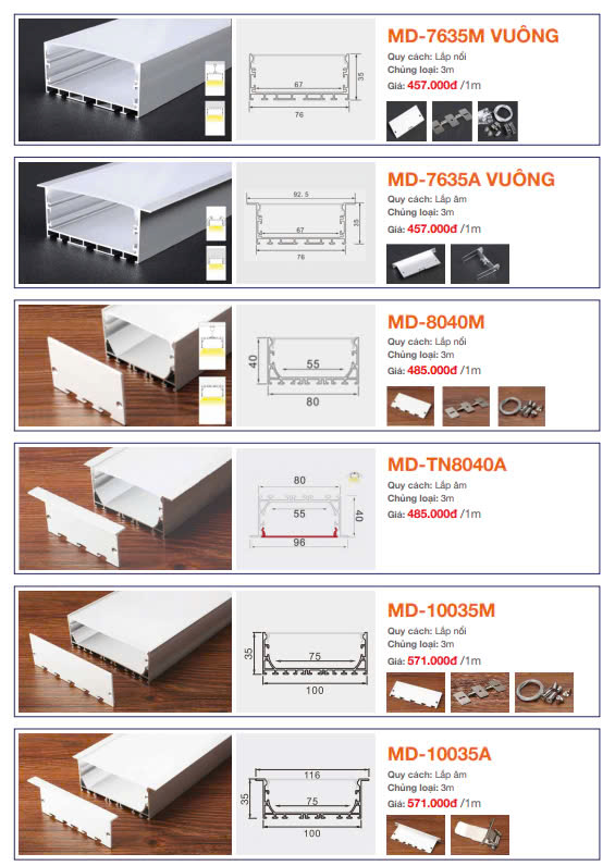 THANH NHÔM U ĐỊNH HÌNH LẮP NỔI & LẮP ÂM